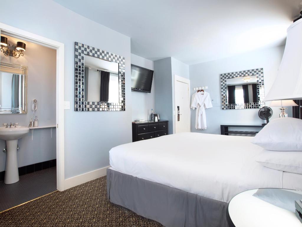 Ballard Inn's Deluxe King rooms each feature a stylish, unique design. Each Deluxe King room features a 32 inch Flat-Screen Television, one king size bed complete with a premium down comforter, and down pillows. Each Deluxe King room offers a private bathroom en suite.